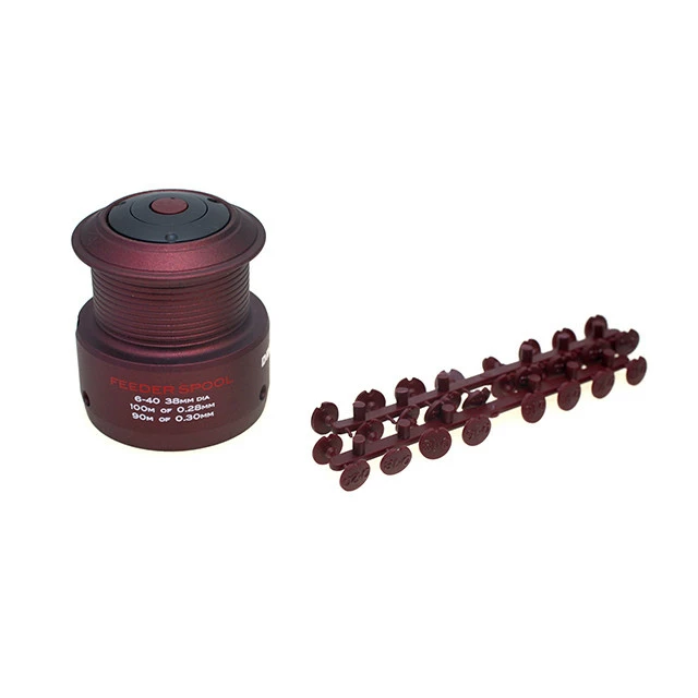 The Drennan red range 60-40 reel, a super smooth rear drag reel to cover all your feeder fishing needs. Featuring an instant silent anti-reverse, a 5.2:1 ratio plus 5 ball bearings. They come supplied with two spools, both designed to hold 100m of mono lines and give you perfectly filled spools without the need for any backing. They also come with tough rubber buttons that clip onto the spool to identify the breaking strain of line.