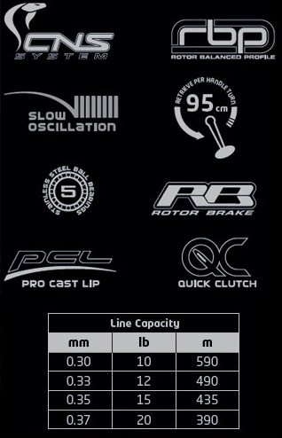 - 95cm of line retrieved per handle turn