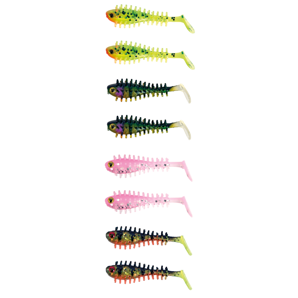 A Grab and go pack of highly reflective miniature soft plastics in a range of colours with an awesome swimming action on the retrieve thanks to the paddletail. Simply mount onto your chosen hook or jig head and your ready to fish.