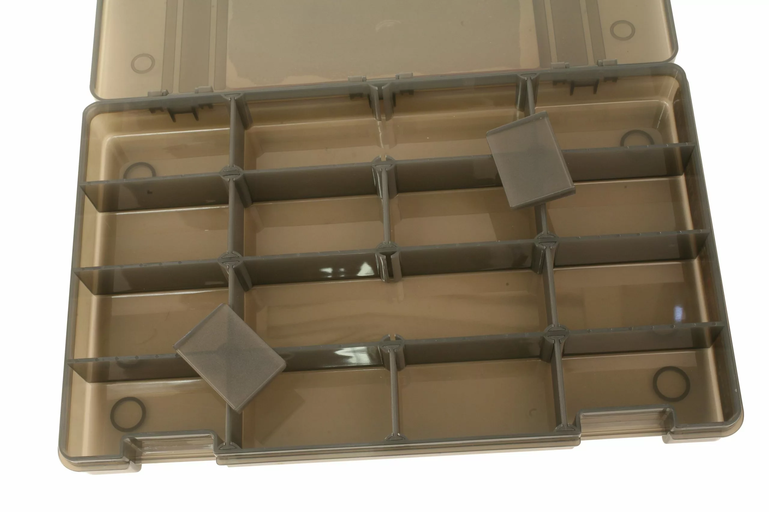 Fox Rage Stack N Store tackle boxes, a winning concept in organisation and storage made of durable plastic and with adjustable individual compartments. The lid cover and dividers are separately removable, not fixed, and therefore cannot break off. In addition the boxes are plasticiser-resistant and, therefore, suitable for storage of all kinds of rubber baits.