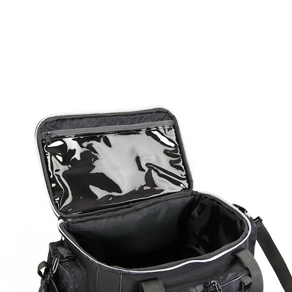The largest option available in the Rage voyager camo luggage range also comes fully loaded with three medium, one medium deep and on additional small tackle box. Manufactured from a rugged hardwearing fabric with a solid moulded EVA base. There a re plenty of outer pockets to store any extras, plus there’s still plenty of room inside the main compartment, even when all the tackle boxes are stored inside. With all the nice added touches seen on the other sizes available including a spring coil tool holder, a Velcro pliers pouch a D ring for adding your voyager unhooking mat. These also feature a dedicated glasses pouch on the outer front pocket.
