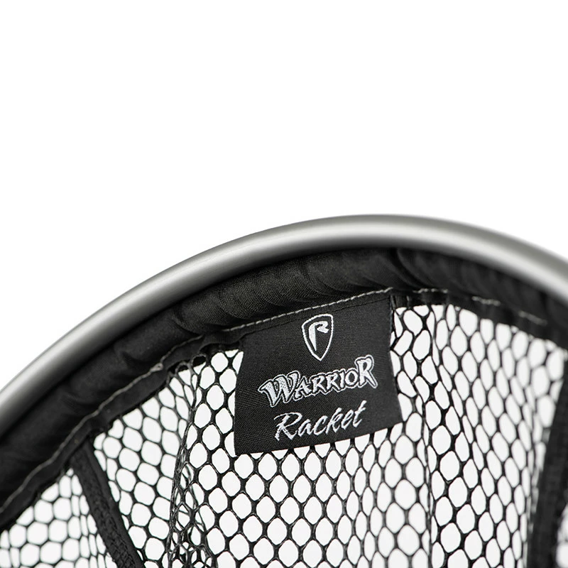 The Fox Warrior racket net, a short handles pan style net ideal for small waters and wading. With a floating frame, ergonomic grip handle and rubberised mesh that makes removing loose hooks easy. Comes complete with an elasticated connecting lanyard with a clip to attach to your belt or luggage.Â