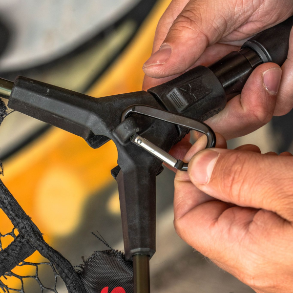 A folding net head you can easily release and deploy with just one hand! Featuring a spring loaded mechanism that unfolds and operates with the simple press of a button. The main block also has an attachment you can use to clip on a quick release magnet, or carabiner. The mesh itself is fish friendly and rubberised, so it’s much easier to release any loose or flying hooks. With a depth of 50cm, there’s enough room to tuck your catch into the margins while you prepare your weighting gear. Â