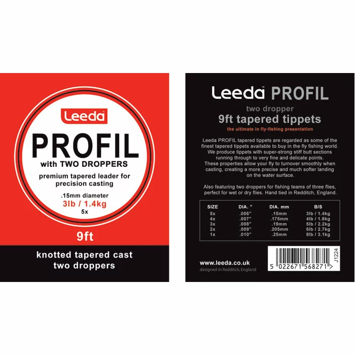- 9ft fly casts with 2 droppers ready tied for presenting wet flies or teams of nymphs