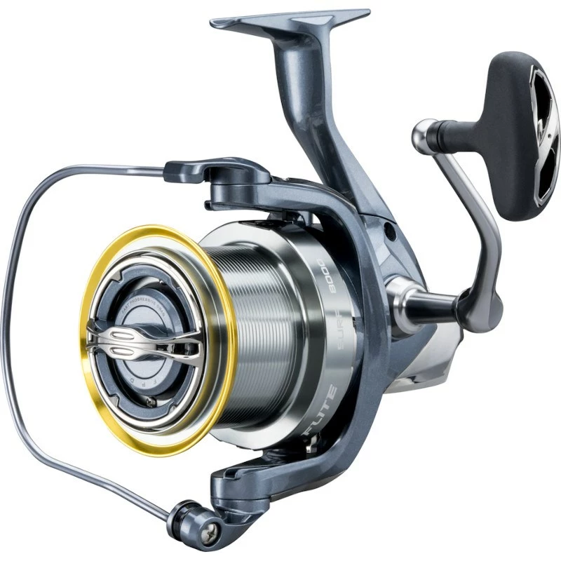 The Okuma Flite Surf is a top end powerful lightweight beachcasting reel packed with technology. starting with Okuma’s quality C-40X carbon frame and side plates, plus the C-40X Cyclonic Flow Rotor for corrosion resistance. Fitted with a strong worm shaft transmission system coupled with frictionless ultra lightweight Aluminium shaft. A Carbon Fibre Drag System controlled with a fast progressive front drag. Featuring super slow oscillation that gives exceptional line lay back onto the spool. Â