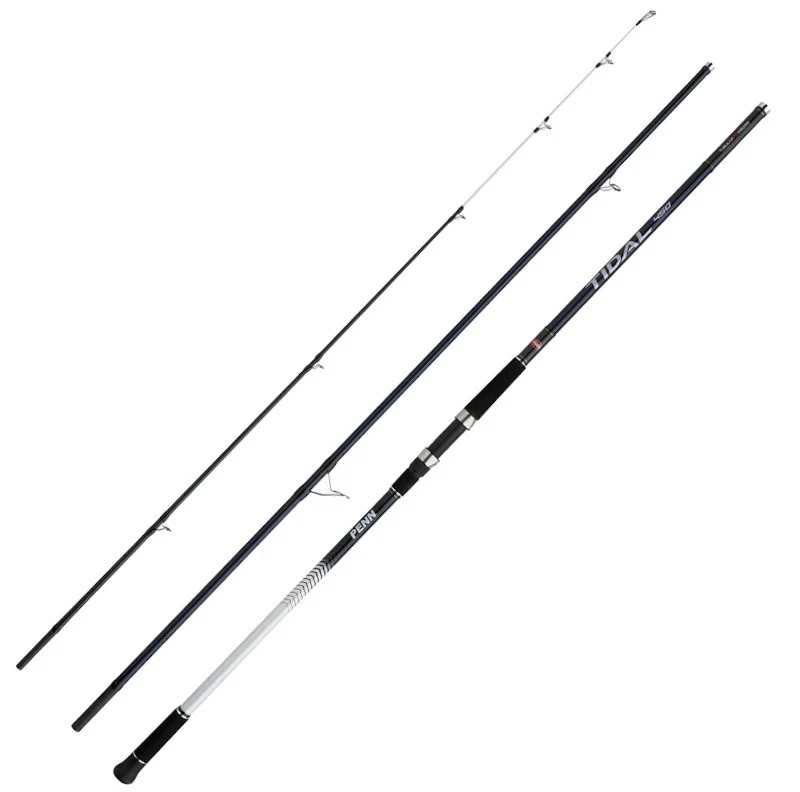 Penn Tidal Rough Ground Surfcasting Rods, a pair of super strong slim 24T carbon blanks designed to cope with medium to rough ground. Fitted with anti-tangle saltwater resistant K guides for improved casting performance and with a glow in the dark hollow tip that still retains enough sensitivity to show shy bites at extreme range. Finished with high density EVA handles and a sturdy DPS reelseat.