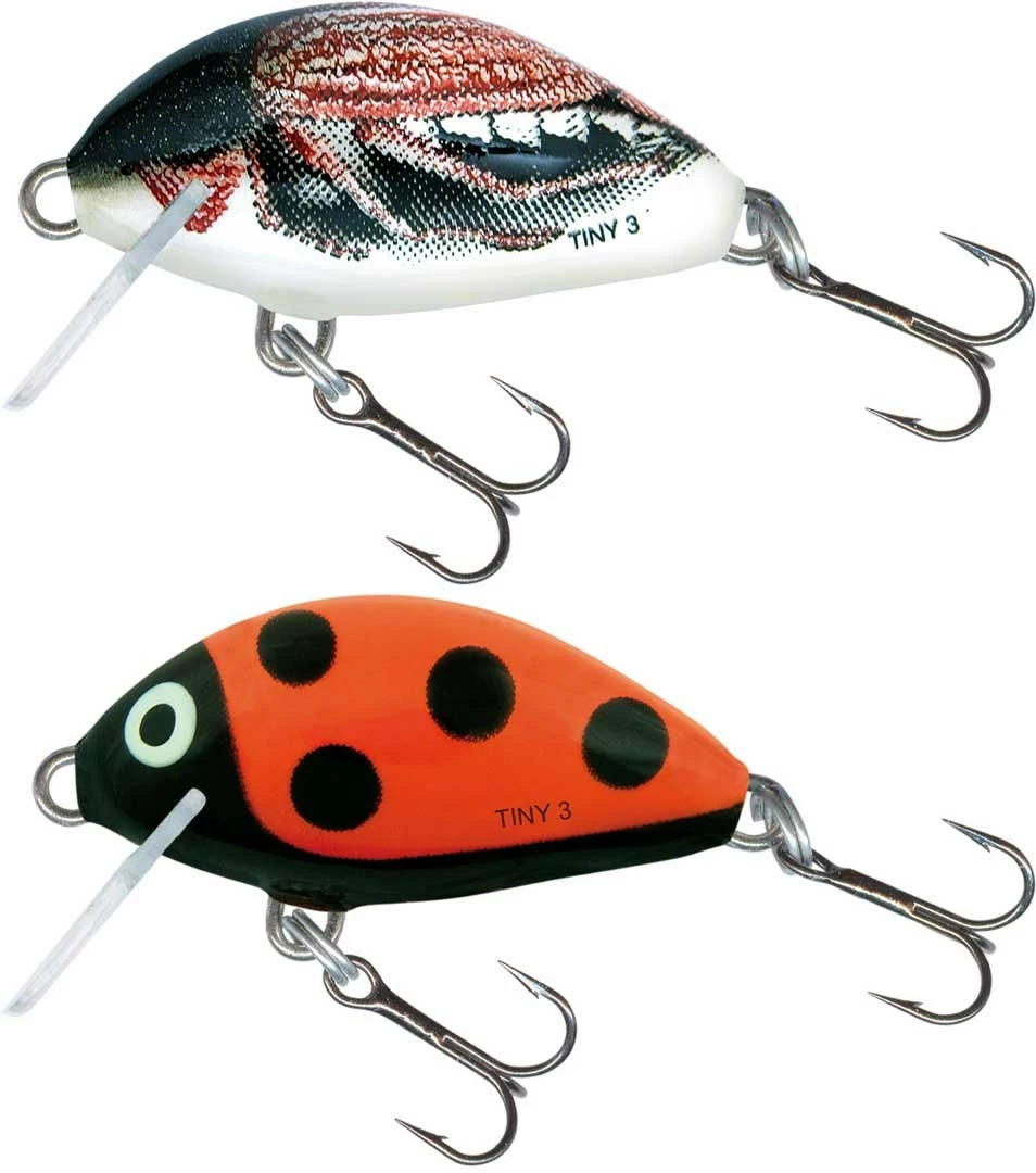 Perfect miniature lures from American lure specialists Salmo. Ideal for light lure fishing and LRF setups, often triggering a very aggressive feeding response. By switching between the sinking and floating versions of this crankbait you can effectively fish all the promising-looking spots on a river. A classic way of fishing with this lure in large rivers is casting the lure across the flow and retrieving as slowly as possible. In small streams with a lot of obstacles to casting you should let the lure move with the current as far as possible and then retrieve it slowly upstream, with pauses, allowing it more time in the most interesting places.
