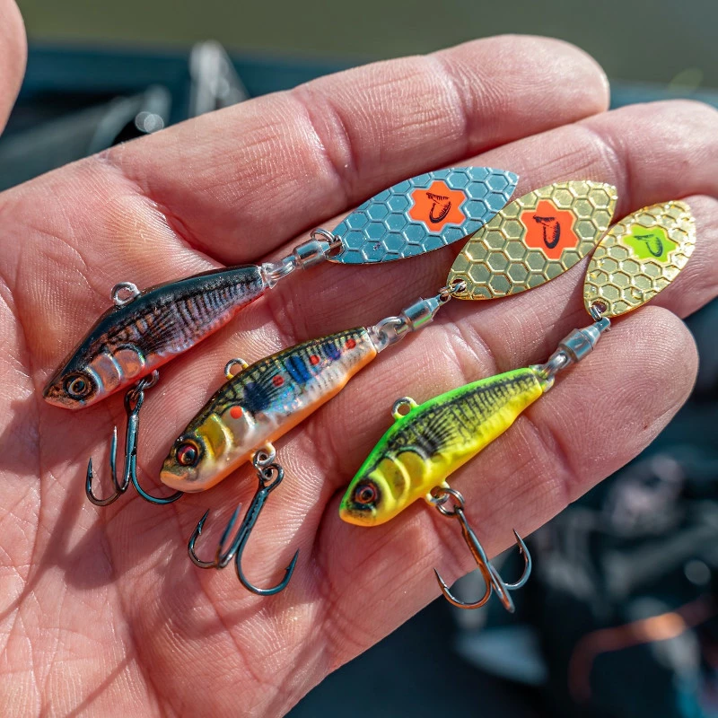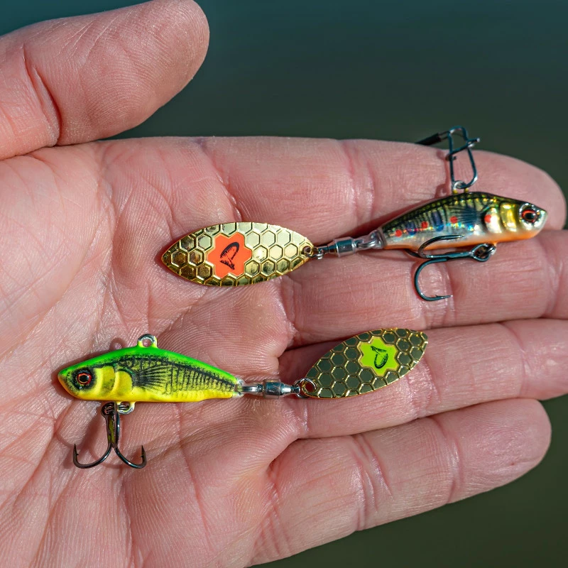Small versatile long casting lures with a rotating flashing spinner blade tail. With an action that runs straight and true with the spinning tail increasing in speed as you work them back through the water. A highly effective pattern that will draw attention from predatory species large and small but especially effective for perch.