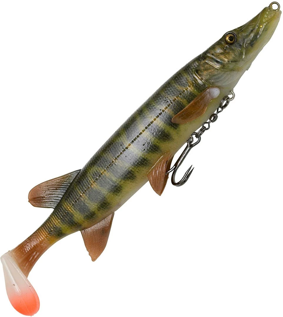 - With pristine detail, this is a based on a 3D scan using photo chrome skin print. Super realistic, there is also a special ‘DNA scent’ that been added! The treble hook is mounted on the belly, so the predator has a hard time trying to throw the hook. It rocks and rattles through the water due to the paddle tail, sending out provoking ‘clicks’.