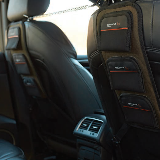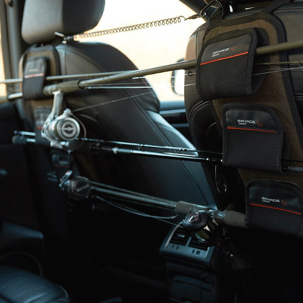 A creative, innovative solution from Savage for transporting your rods and outfits to the bank in one piece. This system allows you to secure three rods across the back of your carseats, all held in place with Velcro flaps. You also get a coiled zinger that clips between your headrests so you can rest even more from your parcel shelf. Great for dealing with longer rod setups that wont fit across the back of your casrseats.