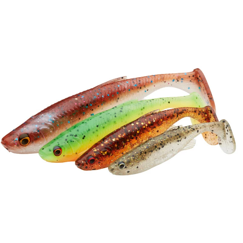 Individual highly realistic plastic lures with a small paddle tail available in a range of twin and triple injection moulded colours. Based on a 3D scan of an actual minnow, they also have a slot on the belly to add a rattle for further attraction. An effective choice for all freshwater predators but especially effective for perch.