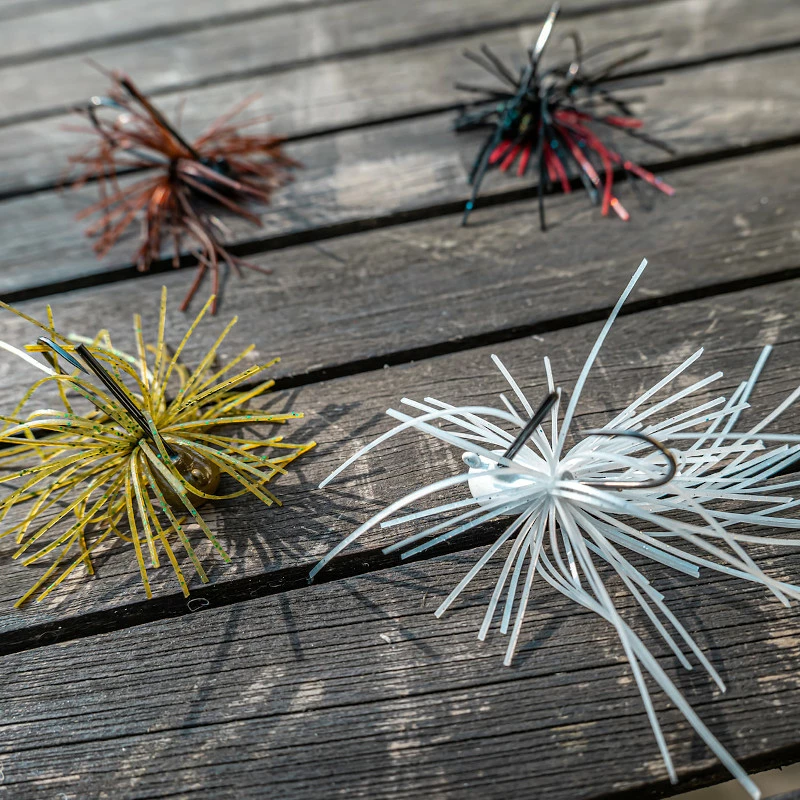 Small sized Jig heads with an attractive flashy silicone skirt and weed protector. Ideal for lightweight delicate presentations and featuring an ultra sharp J hook plus a bait holder so you can add a trailer lure if you wish. A deadly pattern for working around snags and obstructions with the ability to tag on a small plastic addition for even more attraction. A lure that’s popular with light lure fishing and LRF enthusiasts in both fresh and salt water. Â