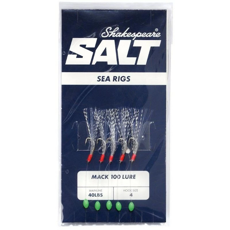 A highly reflective 5 hook pattern ideal for targeting mackerel in the summer months. Each hook has a feather and tinsel teaser whipped to the eye.